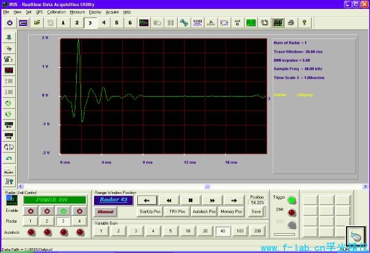 探地雷达数据由板载数据采集子系统采集并存储在内部硬盘驱动器上。 *多可以采集6个通道并显示在高强度TFT液晶显示屏上,并在IRIS控制台上进行分析或通过USB传输到档案存储器或下载到办公室电脑。